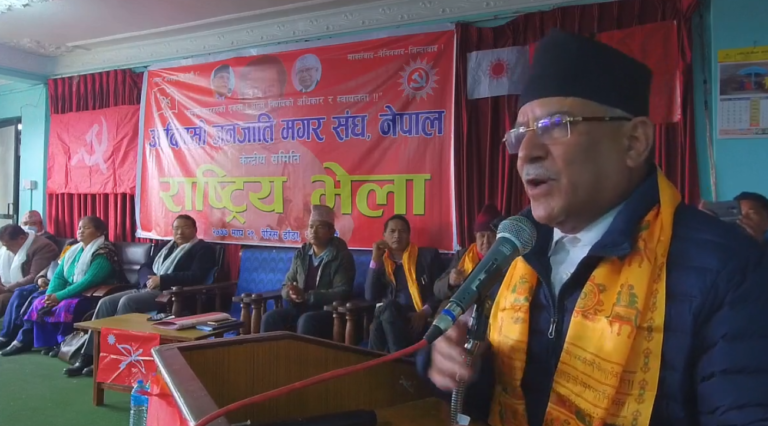 बिहीबार आदिवासी जनजाति मगर संघ, नेपाल केन्द्रीय समितिको राष्ट्रिय भेलालाई सम्बोधन गर्दै अध्यक्ष दाहालले पक्राउको विरोध गरेका हुन् । उनले आफू कार्यक्रममा बसिरहेको बेलामा झाँक्री पक्राउको सूचना आएको सुनाउँदै भने–उनीहरुले जबरजस्ती कमरेड रामकुमारी झाँक्रीलाई पक्राउ गरेर लिएर गएका छन् । यो पनि तपाईँ मगर मोर्चाको निम्ति, नेताको निम्ति र हाम्रो पार्टीको कम्युनिष्ट पार्टीको निम्ति पनि एउटा चूनौति भएको छ । उनीहरुले यहीँ हमला गरे । हमला कहाँ गर्यो त ? भन्दा उत्पीडित जाति, वर्गका प्रतिनिधिमाथि चाहीँ हमला गर्न खोजेका छन् । उहाँ त मलाई लाग्छ, छिट्टै नै छुटिहाल्नुहुन्छ होला । तर पनि उनीहरुको नियत त देखियो नि । उनीहरुले कहाँ प्रहार गर्न खोजे ? जसले लोकतन्त्रको पक्षमा आफ्नो विचारहरु प्रखर ढंगले राख्ने काम गर्यो, त्यसकारण त्यो लोकतन्त्र र विचारमाथि ताला लगाउने, चाबी लगाउने षड्यन्त्र भएको छ । तपाईँहरुले पनि एउटा प्रस्ताव पारित गर्नुहोला । हामी पनि फेरि पार्टीको तर्फबाट गर्नुपर्ने सबै काम गर्छौं ।’