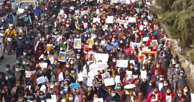 माघ ३०, काठमाण्डौ । संसद विघटनपछि दिनहुँ जसो सडकमा विरोध प्रदर्शन भइरहेका छन् । राजनीतिक दल, नागरिक समाज, अभियान्ता, अधिकारकर्मीदेखि स्रस्टा र कलाकारसम्म सडकमा देखिन थालेका छन् । उनीहरुले संविधानको चिन्ता गर्नेदेखि समसायिक विषयमा जनताले पाएका सास्तीबारे सरकारको ध्यानाकर्षण गराएका छन् ।