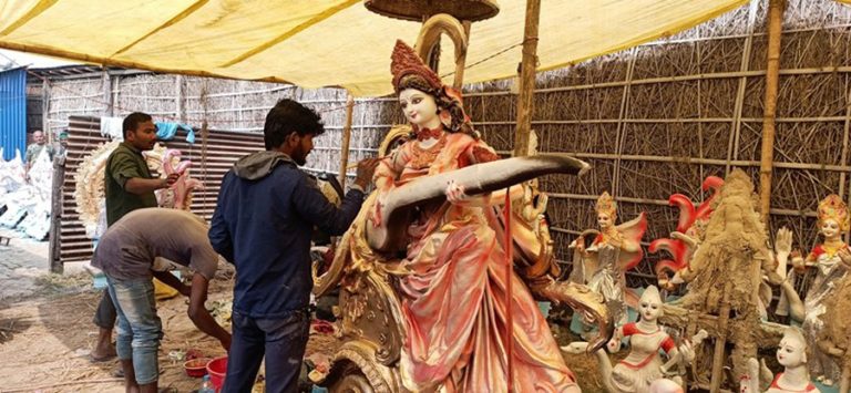 मूर्ति निर्माणमा श्रृङ्गार लगायतका अधिकांश सामाग्री भारतबाट खरीद गर्नुपर्ने बाध्यता रहेको जानकारी दिदैँ यसवर्षको पूजाको लागि ७० वटा मूर्ति निर्माण गरेको र यो सम्भवतः आजै सबै बिक्री हुन्छ भने । पण्डितले विगतमा सिकर्मी थिए तर अहिले राम्रो मूर्तिकार भएका छन् ।