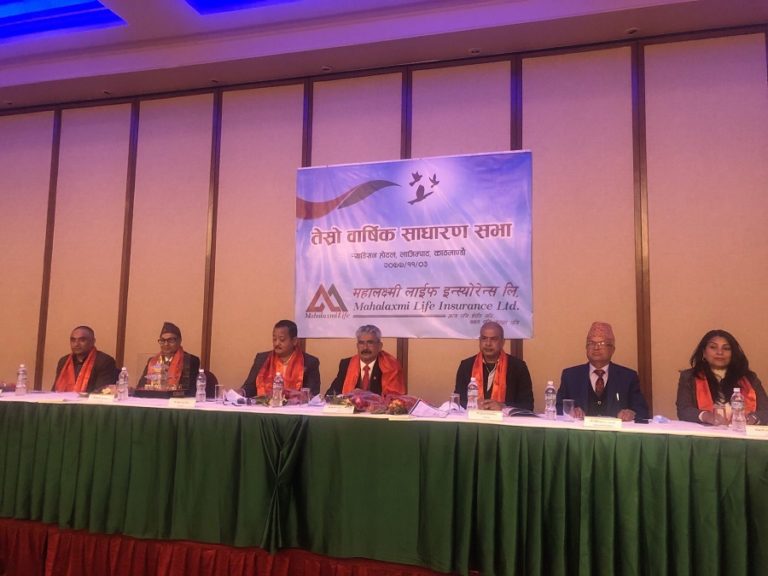 काठमाडौं, ४ फागुन । महालक्ष्मी लाईफ इन्स्योरेन्स लिमिटेडको तेस्रो वार्षिक साधारण सभा काठमाण्डौमा हिजो (सोमबार) सम्पन्न भएको छ । अध्यक्ष मनोरञ्जन रमण शर्माको अध्यक्षतामा होटल ¥याडिसनमा सञ्चालन भएको सभामा कम्पनीका प्रमुख कार्यकारी अधिकृत रमेश कुमार भट्टराईले स्वागत मन्तव्य व्यक्त गर्दै जीबन बीमा क्षेत्रको अवस्था र समस्या बारेमा जानकारी गराएका थिए ।