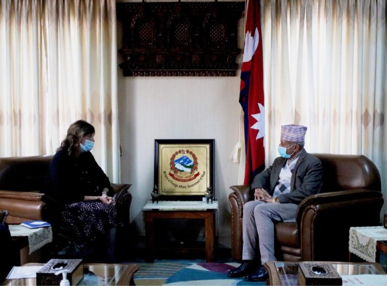 काठमाडौं, ५ फागुन । नेपालका लागि नवनियुक्त अष्ट्रेलियन राजदूत फेलिसिटी जेन भल्कले परराष्ट्रमन्त्री प्रदीप कुमार ज्ञवालीसँग आज शिष्टाचार भेटवार्ता गरेकी छिन् । सिंहदरबारस्थित् मन्त्रालयमा पुगेर राजदूत भल्कले आज मन्त्री ज्ञवालीसँग शिष्टाचार भेट गरेकी हुन् । भेटमा नेपाल–अष्ट्रेलिया सम्बन्ध र हित, तथा सहकार्यको बारेमा कुराकानी भएको जनाईएको छ ।