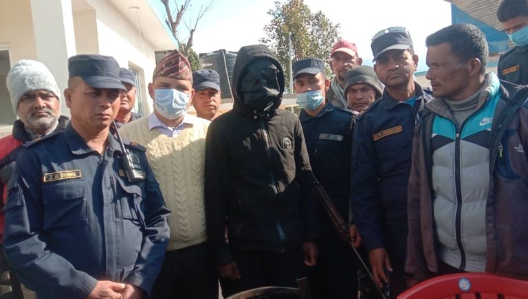 काठमाडौं, ५ फागुन । प्रहरीले बैतडीको दोगडाकेदार गाउँपालिका–७ की १७ वर्षीया किशोरी भागरथी भट्टको बलात्कारपछि हत्या आरोपमा पक्राउ परेका युवक दिनेश भट्टलाई सार्वजनिक गरेको छ । आज (बुधबार) दिउँसो जिल्ला प्रहरी कार्यालय बैतडीमा पत्रकार सम्मेलन गर्दै दिनेलाई सार्वजनिक गरिएको हो । काठमाडौं, ५ फागुन । प्रहरीले बैतडीकी भागरथी भट्टको हत्याका अभियुक्त दिनेश भट्टलाई सार्वजनिक गरेको छ । आज जिल्ला प्रहरी कार्यालय बैतडीको परिसरमा उनलाई सार्वजनिक गरेको हो ।