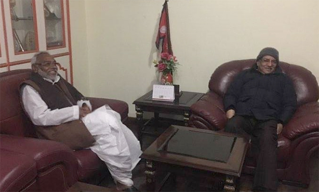 नेकपा कार्यालय पेरिसडाँडामा जसपा अध्यक्ष महन्थ ठाकुर र वरिष्ठ नेता राजेन्द्र महतोसँग दाहाल नेपालले करिब १ घण्टा सरकार निर्माणबारे छलफल गरेका थिए । छलफलमा दाहाल–नेपालले सरकार निर्माणमा सहकार्य गरेर अगाडि बढ्न प्रस्ताव गरेका छन् । सो छलफलमा जसपाका नेताहरूले दाहाल–नेपाललाई तपाईंहरूको पार्टी कुन हो भन्दै व्यंग्यसमेत गरेका छन् ।