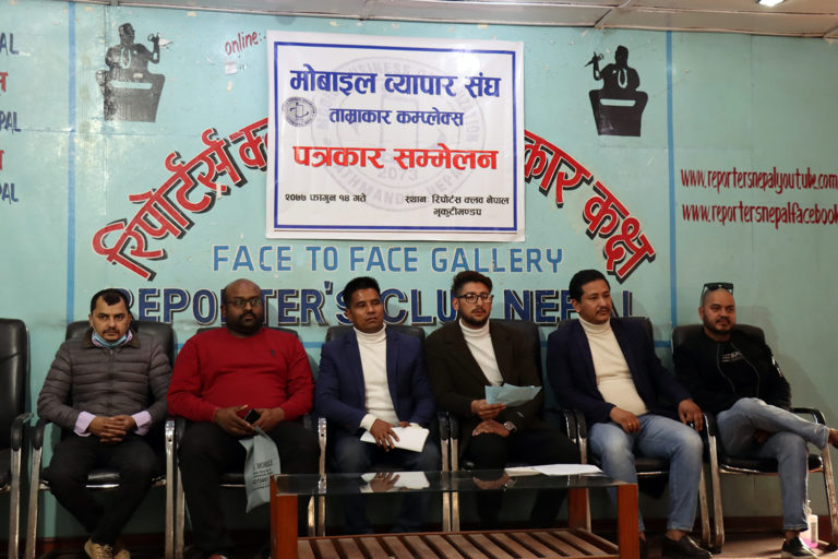 काठमाडौं, १४ फागुन । मोबाइल व्यावसायी संघ (ताम्राकार कम्प्लेक्स)ले कम्प्लेक्समा संचालित मोवाइल व्यवसायीहरुको पसलबाट अवैध कार्य गरेको भन्दै प्रहरीले सामाग्रीहरु उठाएर लगेको घटनाप्रति आपत्ति जनाएको छ । आज रिपोर्टर्स क्लब नेपालमा पत्रकार सम्मेलन गरी संघले व्यावसायीलाई बदनाम पार्ने नियतले उठाएर लगिएको र लगाइएको आरोपप्रति ध्यानाकर्षण भएको जनाएको हो ।