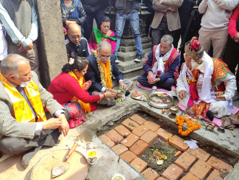 काठमाडौं, १६ फागुन । नेपालका लागि भारतीय राजदूत विनय मोहन क्वात्रा, नेपाल सरकार राष्ट्रिय पुनर्निर्माण प्राधिकरणका प्रमुख कार्यकारी अधिकृत तथा काठमाडौं महानगरपालिकाका मेयरले सेतो मच्छिन्द्रनाथ मन्दिरको संरक्षण एवम् पुनस्र्थापनाको काम गर्न आज संयुक्त रुपमा भूमि पूजन कार्यक्रमको शुभारम्भ गरेका छन् ।