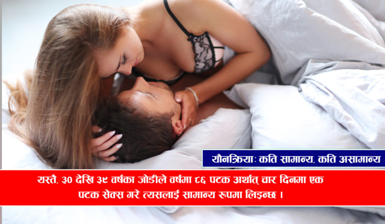 जोडीबीचको नितान्त निजी मामिला हो सेक्स अर्थात् यौनसम्पर्क । त्यसैले यति पटक नै हुनुपर्छ भन्ने प्रश्न त्यति सान्दर्भिक पनि होइन । यौनसम्पर्क घटबढ हुनुमा जोडीको रुचि, अवस्था, वातावरण, उमेर, स्वास्थ्य आदिको प्रभाव पर्न सक्छ । त्यसैले सेक्स कति पटकलाई सामान्य मान्ने भन्ने प्रश्नको सटीक उत्तर दिन सकिँदैन ।