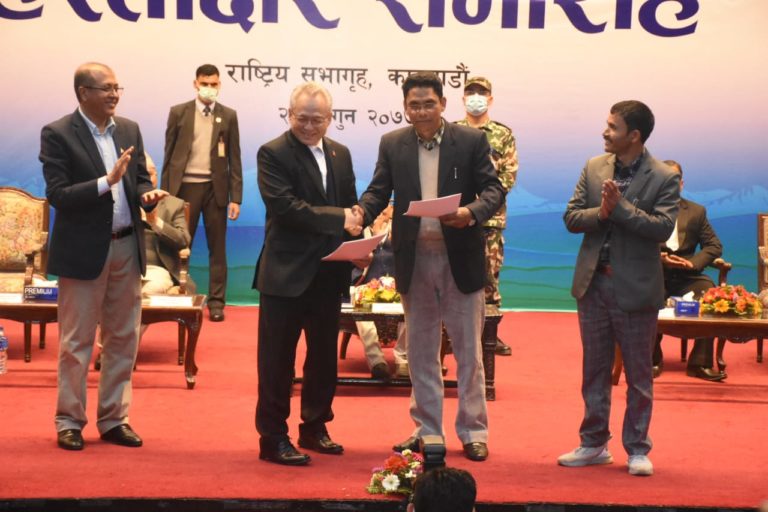 काठमाडौं, २१ फागुन । सरकार र नेपाल कम्युनिस्ट पार्टी विप्लव समूहबीच तीन बुँदे शान्ति सम्झौतामा हस्ताक्षर भएको छ । आज अपरान्ह राष्ट्रियसभामा आयोजित समारोहमा सरकारका तर्फबाट गृहमन्त्री रामबहादुर थापा बादल र नेपाल कम्युनिस्ट पार्टी विप्लव समूहका प्रवक्ता खड्कबहादुर विश्वकर्मा प्रकाण्डले शान्ति सम्झौतामा हस्ताक्षर गरेका हुन् ।