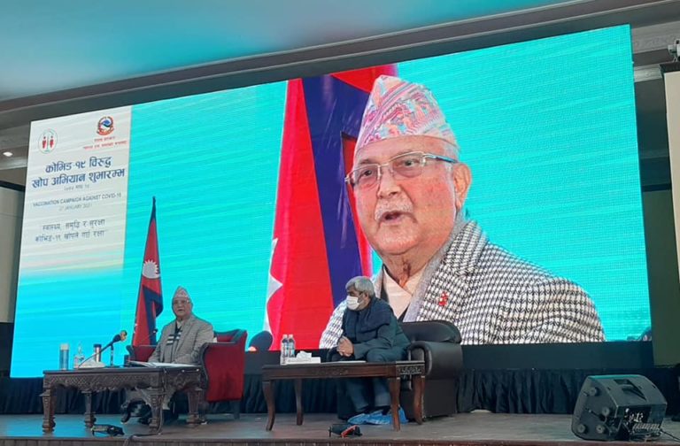 काठमाडौं, फागुन २३ । प्रधानमन्त्री केपी शर्मा ओलीले कोरोना भाइरसविरुद्धको खोप लगाएका छन्। उनले आज बिहान महाराजगञ्जस्थित शिक्षण अस्पताल पुगेर खोप लगाएका हुन्।