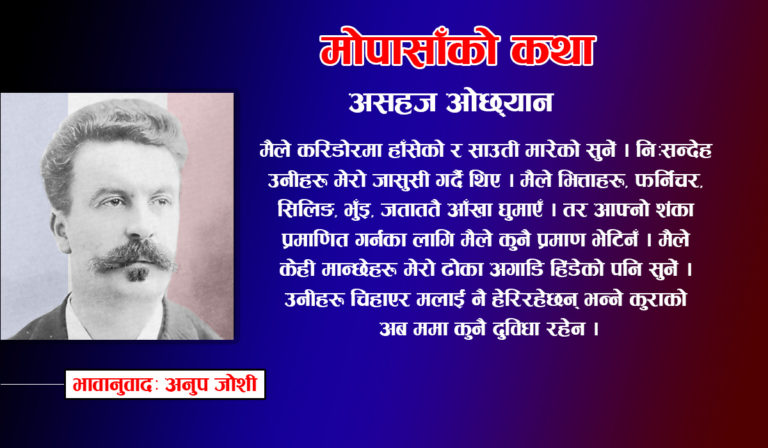 प्रसिद्ध फ्रान्सेली लेखक गाई दी मोपासाँ विश्व साहित्यमा १९औं शताब्दीका एक महान् कथाकार हुन् । युवावयमै ‘सिफलिस’ रोग संक्रमित बनेका उनी एकान्त मन पराउने र डराउने खालका भएका थिए । सन् १८९२ मा उनले आफ्नै घाँटी काटेर आत्महत्याको प्रयास गरेपछि उनलाई पागलखाना लगिएको थियो । त्यसको एक वर्षपछि उनी ४३ वर्षको उमेरमा बितेका थिए । कम उमेरमै संसार छोडे पनि उनले आफ्नो जीवनकालमा ६ वटा उपन्यास र ३०० भन्दा बढी कथाहरू लेखेका थिए । रोचक के भने उनी सन् १८८७ मा पेरिसमा निर्माण गरिएको सुन्दर आइफेल टावरलाई मन पराउँदैनथे । तर उनी त्यही टावरको तल रहेको रेस्टुराँमा गएर खाना खाने गर्थे किनभने पेरिसको सबैतिरबाट देखिने आइफेल टावर त्यहाँबाट भने देखिँदैनथ्यो ।