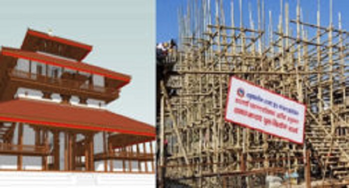 काठमाडौँ, २ चैत: काष्ठमण्डप पुनःनिर्माणको काम ९० प्रतिशत सम्पन्न भएको छ । आगामी वैशाख महिनामा नै सक्ने गरी तीव्ररूपमा निर्माण भइरहेको छ । निर्माणअन्तर्गत अहिले काठ, माटो र झिङ्गटीबाट छानो छाउने काम भइरहेको छ । निर्माणका लागि अहिले दैनिक ३५ कामदार नियमितरूपमा खटिइरहेका छन् । छानोमा प्रयोग भइरहेको माटो अरुभन्दा अलि विशेष किसिमको हुने हुँदा पानीले भिज्दा पनि असर नगर्ने किसिमको हुन्छ ।
