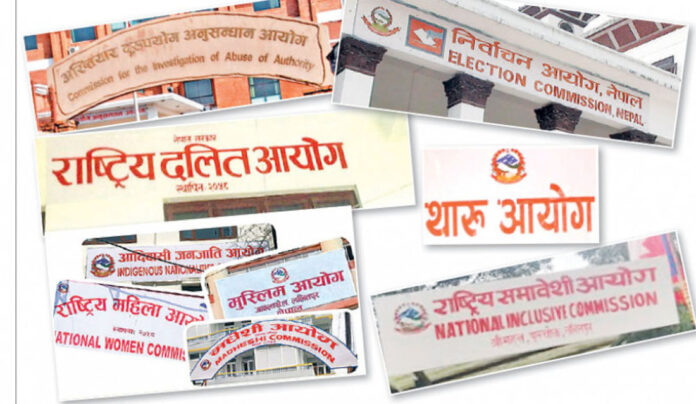 यसरी दोहोरो सुविधा लिएर राज्यकोषको ढुकुटी रित्याउने काममा संलग्न संवैधानिक निकायका उच्चपदस्थ व्यक्तिमा लोकसेवा आयोगका अध्यक्ष उमेशप्रसाद मैनाली, लोकसेवा आयोगकै सदस्य वृन्दा हाडा, आयोगकै पूर्वअध्यक्ष कंयोदेवी यामी, आयोगकै पूर्वसदस्य टीकादत्त निरौला, शिक्षा सेवा आयोगका अध्यक्ष ताना गौतम, वित्त आयोगका अध्यक्ष बालानन्द पौडेल, भाषा आयोगका अध्यक्ष लवदेव अवस्थी, निर्वाचन आयोगका आयुक्तद्वय ईश्वरी पौडेल र नरेन्द्र दाहाल छन् ।