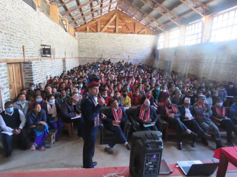 खलङ्गा, ५ चैत । कर्णाली प्राविधिक शिक्षालयका प्रधानाध्यापक, शिक्षक, शिक्षिका, कर्मचारी, विद्यार्थीहरु तथा चन्दननाथ नगरपालिका–३ का जनप्रतिनिधिका लागि लागु औषध तथा दुर्व्यसनी बिरुद्ध सचेतनामूलक कार्यक्रम र मुलुकी अपराध संहिता २०७४ मा व्यवस्था भएका नयाँ कानुनी प्रावधानहरु एवं जवरजस्ती करणी कसुरका बिषयमा छलफल एवं अन्तक्रिया कार्यक्रमका सहभागी । सो अन्तक्रिया कार्यक्रम जिल्ला प्रहरी कार्यालय जुम्ला, जिल्ला प्रशासन, उच्च सरकारी वकिल कार्यालय र जिल्ला सरकारी वकिल कार्यालयको संयुक्त रुपमा गरेका थियो ।