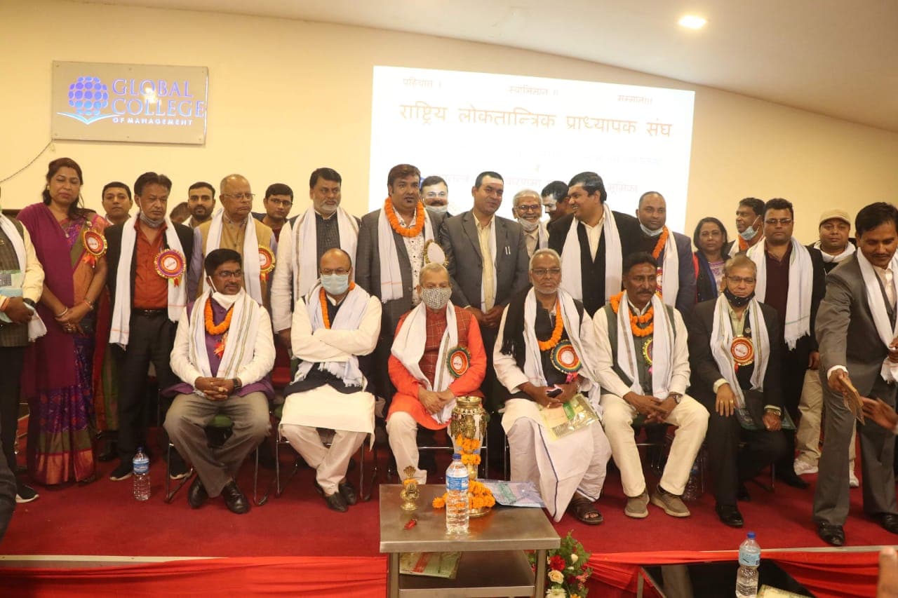 आदरणीय पत्रकार मित्रहरू यही मिति २०७७-१२-४ गते राष्ट्रिय लोकतान्तिक प्राध्यापक संघको १३ औँ वार्षिक उत्सव र सङ्गठन समायोजन कार्यक्रम जसपाका अध्यक्ष महन्त ठाकुरको प्रमुख अतिथ्यतामा सम्पन्न भयो । उक्त कार्यक्रममा समाजवादी प्राध्यापक मञ्च र राष्ट्रिय लोकतान्त्रिक प्राध्यापक संघको समायोजन घोषणा भयो । यस कार्यक्रमा जसपाका वरिष्ट नेता राजेन्द्र महतोले पनि सम्बोधन गर्नुभएको थियो भने उक्त कार्यक्रममा संघका अध्यक्ष डा. उदयकिशोर तिवारीको सभापतित्वमा सम्पन्न भएको थियो । झण्डै ३०० जना प्राध्यापकहरूको उपस्थिति रहेको उक्त कार्यक्रममा ‘गणतन्त्र सुदृढीकरणमा प्राध्यापकको भूमिका’ शीर्षकमा उपप्रा. अखिलेश कुमार सिंहले कार्यपत्र प्रस्तुत गर्नु भएको थियो । प्रा. चिरिक शोभा ताम्राकारको नेतृत्वमा रहेको समाजवादी प्राध्यपक मञ्च र रालोप्रासंबीच समोयोजन भएको थियो । उक्त कार्यक्रमको घोषणा र मिति २०७७-१२-५ गते समायोजन समितिको बैठकले निम्नानुसारको पदाधिकारी र केन्द्रीय समिति एवं सल्लहाकार समितिको गठन गरेको थियो । यस समायोजित समितिको सूची यसप्रकार रहेको जानकागरी गराउँदछु ।
