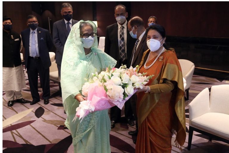 -प्रकाश सिलवाल ९ चैत : बङ्गलादेशको राजकीय भ्रमणमा रहनुभएका राष्ट्रपति विद्यादेवी भण्डारीसँग आज राजधानी ढाकास्थित होटेल कन्टिनेन्टलमा बङ्गलादेशका प्रधानमन्त्री शेख हसिनाले शिष्टाचार भेटवार्ता गर्नुभएको छ । परराष्ट्रमन्त्री प्रदीपकुमार ज्ञवाली र बङ्गलादेशका लागि नेपाली राजदूत डा वंशीधर मिश्र, बङ्गलादेशका विदेशमन्त्री डा एके अब्दुल मोमेनसहित दुवै देशका उच्चस्तरीय प्रतिनिधि सहभागी भेटवार्ताका क्रममा दुई देशबीचको आपसी सम्बन्ध, पारस्परिक सहयोग र सहकार्यका विषयमा कुराकानी भएको छ ।