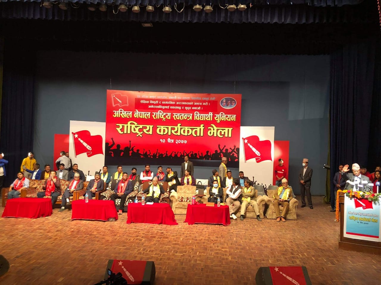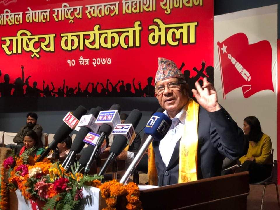 काठमाडौं, १० चैत्र । नेकपा (एमाले) का वरिष्ठ नेता माधव कुमार नेपाल पक्षधर अनेरास्ववियुको राष्ट्रिय कार्यकर्ता भेला सुरु भएको छ । पछिल्लो समय प्रधानमन्त्री तथा पार्टी अध्यक्ष केपी शर्मा ओली र वरिष्ठ नेता नेपाल पक्षबीच अन्तरसंघर्ष चर्किएको छ ।