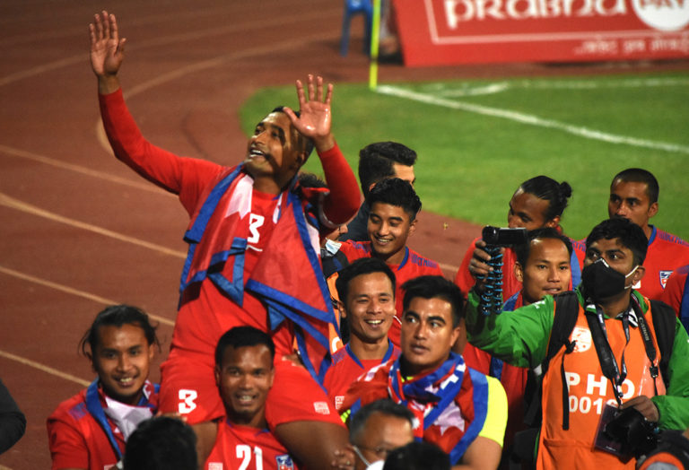 काठमाडौं, १६ चैत्र । नेपाली फुटबल टोलीका पूर्वकप्तान विराज महर्जनले बङ्गलादेश विरुद्धको अन्तर्राष्ट्रिय खेलबाट सन्यास लिएका छन् । उनले आजको खेलबाट सन्यास लिने यसअघि नै घोषणा गरेका थिए ।