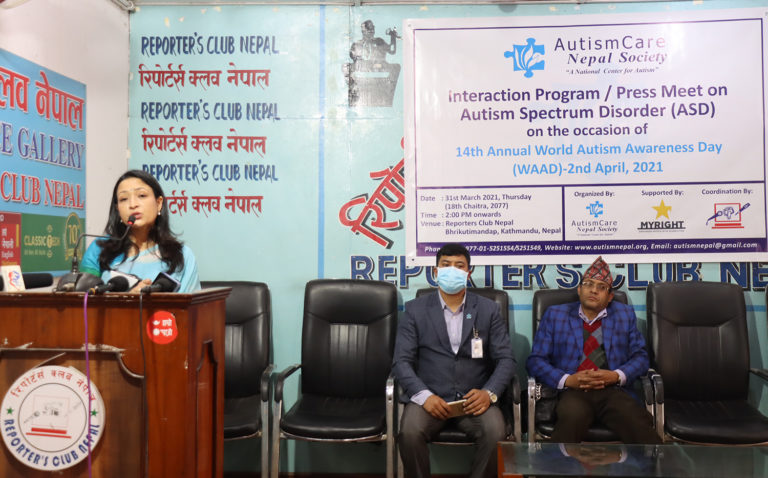 पत्रकार सम्मेलनमा बोल्दै अटिजम केअर नेपाल सोसाइटीको अध्यक्ष डा.सुनिता मलेखु अमात्यले नेपालको परिप्रेक्षमा अझैपनि अटिजम जनचेतनामा एकदमै कमी भएको बताइन् । उनले अभिभावकहरुले सानो उमेरमा बच्चा नबोल्दा पछि बोल्छ भन्ने सोचाईले झन समस्या बढेको जिकिर गरिन् । उनले विश्वमा नै अटिजमको समस्या बढ्दो क्रममा भएको भन्दै अमेरिकामा गरेको अनुसन्धान अनुसार ५४ जना बालबालिका मध्ये एकजनामा अटिजम हुने बताइन् ।