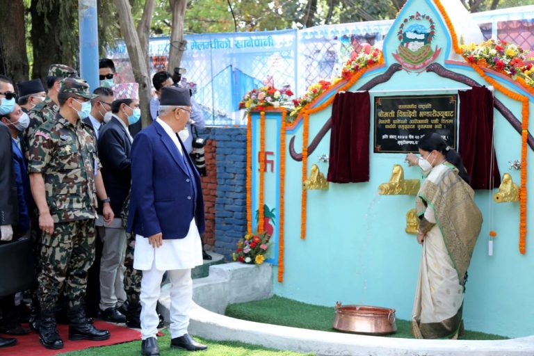 काठमाडौं, २० चैत्र । राष्ट्रपति विद्यादेवी भण्डारीले काठमाडौं उपत्यकामा मेलम्चीको पानी वितरणको औपचारिक उद्घाटन गरेकी छिन् । भृकुटीमण्डपमा आयोजित कार्यक्रममा ढुंगेधाराबाट पानी खसालेर उद्घाटन गरेकी हुन् । उद्घाटन कार्यक्रममा प्रधानमन्त्री केपी शर्मा ओलीको पनि सहभागिता रहेको थियो ।