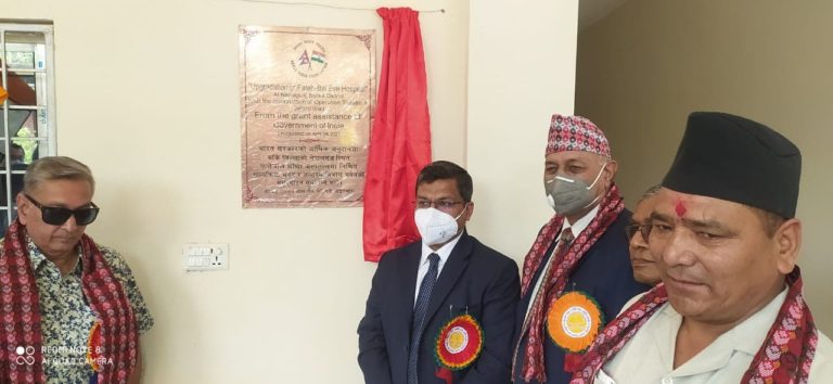 काठमाडौं, २३ चैत्र । काठमाडौंस्थित भारतीय राजदूतावासका प्रशासन प्रमुख करुण वंशलले भारत सरकारको नेरु. ८ करोड ९२ लाख अनुदान सहयोगमा निर्मित दुई परियोजनाको उद्घाटन गरेका छन् । वंशलले नेपालगञ्जमा हालै स्तरोन्नत गरिएको फत्तेबाल आँखा अस्पतालको अस्पतालका अध्यक्षसँग २०७७ चैत्र २२ गते संयुक्त रुपमा उद्घाटन गरे ।