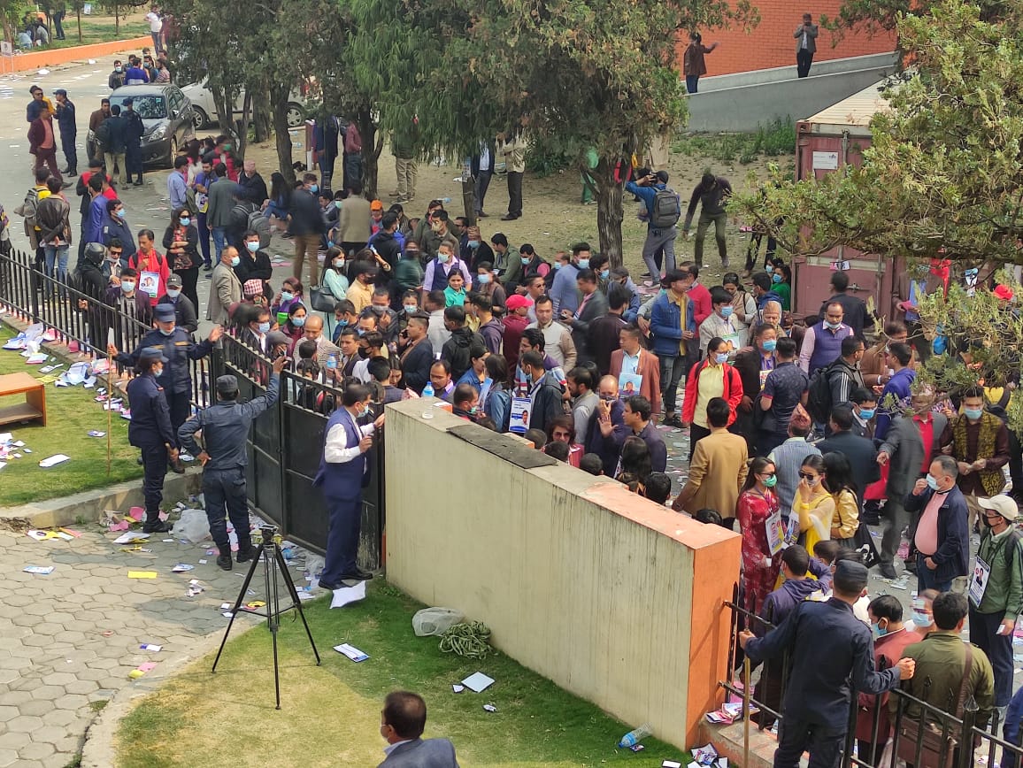 १३ हजार २ सय मतदाता रहेको महासंघको नेतृत्वको लागि यसपटक निर्मला शर्मा, विपुल पोखरेल र गजेन्द्र बुढाथोकी चुनावी मैदानमा छन् । पत्रकार महासंघको इतिहासमा पहिलो पटक प्रत्यक्ष निर्वाचन प्राणालीबाट मतदान भएको हो । तस्विर : मुकुन्द कालिकोटे, रिपोर्टर्स नेपाल डटकम