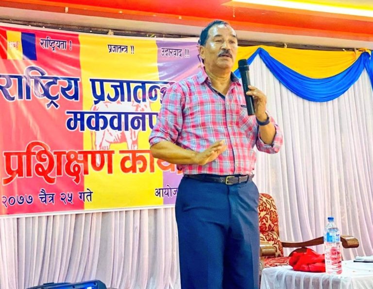मकवानपुर, २५ चैत्र । राष्ट्रिय प्रजातन्त्र पार्टीका अध्यक्ष कमल थापाले भ्रष्टाचार ,धर्मपरिबर्तन र सर्बसत्ताबादलाई सधैको लागि अन्त्य गर्नको निमित्त जनताको मन जितेर राप्रपा अघि बढ्नुपर्ने बताएका छन् । राप्रपा मकवानपुरद्वारा आज हेटौंडामा आयोजित प्रशिक्षण कार्यक्रमलाई सम्बोधन गर्दै थापाले “राष्ट्रियता,प्रजातन्त्र र सनातन धर्म संस्कृतिको संरक्षण र सम्बर्द्धन गर्दै सबल र समृद्ध नेपाल निर्माणको निम्ति अबको विकल्प राप्रपा” भएको समेत दाबी गरे ।