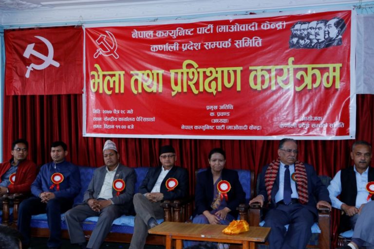 काठमाडौं, २८ चैत्र । नेपाल कम्युनिष्ट पार्टी (माओवादी केन्द्र) का अध्यक्ष पुष्पकमल दाहाल ‘प्रचण्ड’ ले देशी विदेशी प्रतिक्रियावादी मिलेर अप्राकृतिक र अनैतिक ढंगले पार्टी विभाजन गरेको स्पष्ट पारेका छन् । पार्टीको कर्णाली प्रदेश सम्पर्क समितिको भेला तथा प्रशिक्षण कार्यक्रमलाई शनिवार पार्टी केन्द्रीय कार्यालय पेरिसडाँडा, काठमाडौंमा सम्बोधन गर्दै अध्यक्ष दाहालले यस्तो बताएका हुन् । पूर्व प्रधानमन्त्रीसमेत रहेका अध्यक्ष दाहालले आगामी चुनावमा दलहरूसँग मोर्चा बनाएर केपी शर्मा ओलीको पार्टीलाई चौथो स्थानमा झार्ने पनि बताएका छन् ।