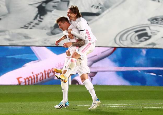 काठमाडौं, २९ चैत्र । एल क्लासिको भीडन्तमा रियल मड्रिडले पहिलो हाफमा २-० को अग्रता बनाएको छ । रियलको लागि पहिलो गोल करिम बेन्जामेले १३ मिनेटमा गरे भने दोस्रो गोल फ्रि किकमार्फत क्रुजले गरेका हुन् । निकै प्रतिष्पर्धात्मक खेलमा बार्सिलोनाले भने राम्रो अवसर खेर फालेको थियो । खेलमा बार्सिलोनाले पकड बलियो बनाएपनि गोल गर्न भने सकेको छैन् । Photo Source: Reuters