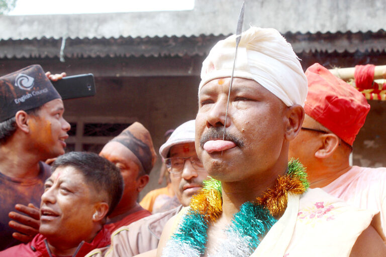 भक्तपुर, बैशाख ३ । भक्तपुरको बिस्केट जात्राअन्तर्गत मध्यपुर थिमिस्थित बोडेको जिब्रो छेड्ने जात्रामा बिहीबार बुद्धकृष्ण बाग श्रेष्ठले ८औं पटक आफ्नो जिब्रो छेडाएका छन्। मध्यपुर थिमि नगरपालिका–८ बोडेस्थित पाँचो गणेश मन्दिर परिसरमा प्रत्येक वर्ष वैशाख २ गते हजारौं भक्तजनको सामुन्ने जिब्रो छेडिने गरिन्छ ।