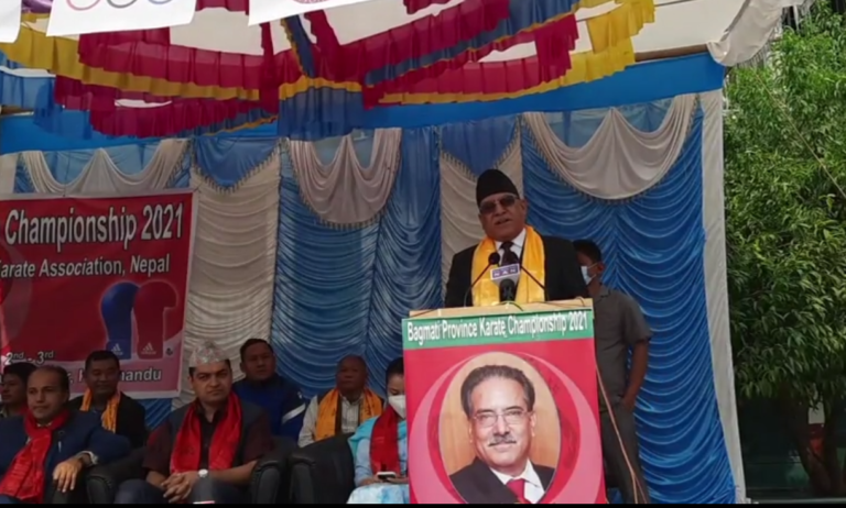 शुक्रबार काठमाडौंमा आयोजित ‘वाग्मती प्रदेश कराँते च्याम्पियनसिप–२०२१’ कार्यक्रमलाई सम्बोधन गर्दै प्रचण्डले यस्तो बताएका हुन् । उनले नेपाली जनताले लडेर ल्याएको परिवर्तन मुठ्ठीभर मानिसले खोसेर नखोसिने पनि बताए । नेपाली जनताले प्रतिनिधिसभा विघटन गर्ने कदमको कडा विरोध तथा आन्दोलन गरेकोले उक्त कदम सच्चिएको दाहालको भनाई छ । उनले प्रधानमन्त्री केपी शर्मा ओलीलाई तानाशाहीको संज्ञा दिए ।