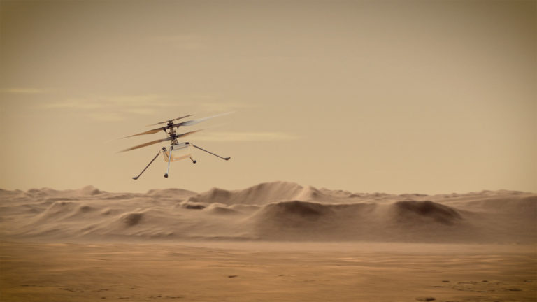 नसाका अनुसार हेलिकोप्टर मङ्गलको सतहबाट केही उचाईमा उडेर सफलतापूर्वक अवतरण गरेको छ । १८ फेब्रुअरीमा मङ्गल ग्रहको सतहमा पुगेको यानसँर्ग पुगेको हेलिकोप्टर पहिलोपटक उडेको हो ।-तस्बिर स्रोतः नासा