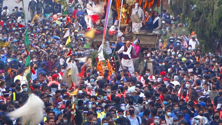 एक दिन रथ तानेका युवाले अर्को दिन नतान्ने व्यवस्था मिलाइएको छ । यसका लागि तीन रङको ज्याकेटको व्यवस्था गरिएको छ । जसले कोरोना सर्नबाट बच्न सकिने आशा गरिएको छ । कोरोना महामारीबाट बच्दै सांस्कृतिक गतिविधिलाई निरन्तरता दिन यस्तो व्यवस्था गरिएको हो । यो नमूना उपत्यकाका अन्य स्थानमा हुने जात्राका लागि पनि काम लाग्ने आशा गरिएको छ । तस्विर : मुकुन्द कालिकोटे, रिपोर्टर्स नेपाल डटकम