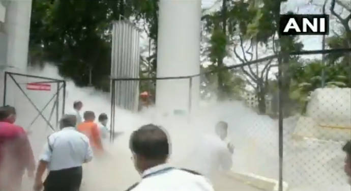 अक्सिजन चुहावट ठिक गर्न प्राविधिकहरुलाई एक घन्टा लागेको थियो । अक्सिजनको पाइपलाइन सिधै कोभिड वार्डमा लगिएको थियो । चुहावटका क्रममा अक्सिजन राखिएको क्षेत्र सेतो ग्याँसले छेकिएको थियो ।-तस्बिर स्रोतः एएनआई