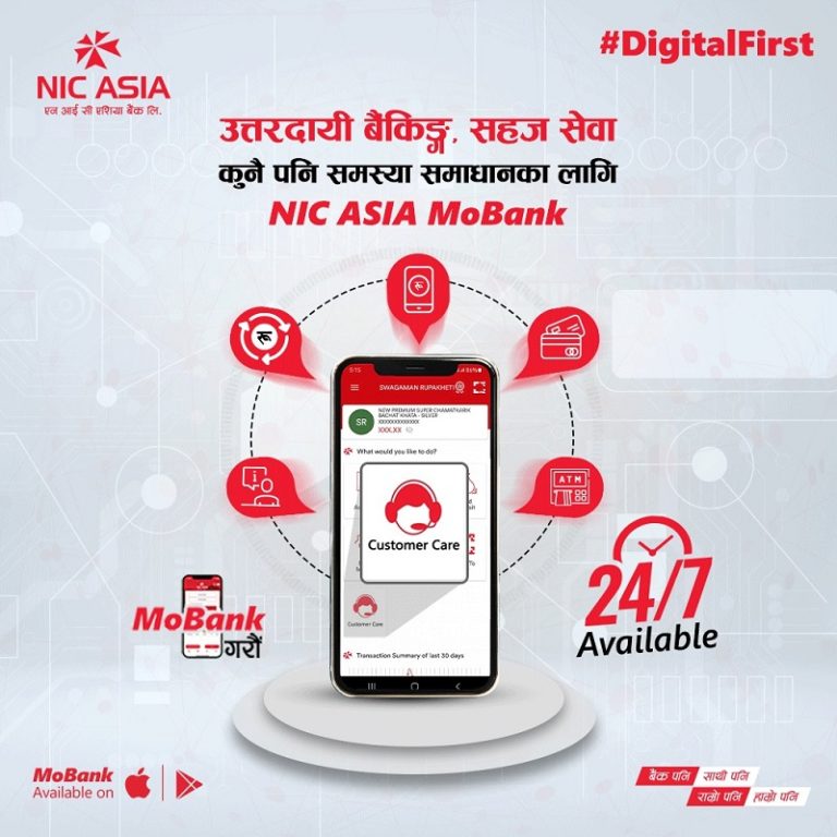 काठमाडौं । डिजिटल बैंकिङ्गमा अग्रणी स्थानमा रहि नविनतम प्रविधिद्वारा सेवा तथा सुविधा प्रदान गर्दै आईरहेको यस एन आई सी एशिया बैंकले आफ्नो मोबाइल बैंकिङ्ग एप (NIC ASIA MoBank) मा सहज डिजिटल कारोबारको अलावा पृथक एवं ग्राहकमैत्री सेवाको लागि मोबाइल बैंकिङ्ग एपमा ‘Customer Care’ को सुरुवात गरेको छ ।