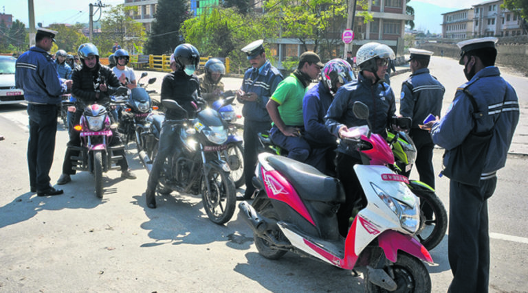 काठमाडौं, १६ बैशाख । कोरोना संक्रमण नियन्त्रण तथा रोकथामका लागि निषेधाज्ञाको पहिलो दिन उपत्यकामा प्रहरीले चेकजाँच कडा बनाएको छ । निषेधाज्ञाको पहिलो दिन बिहीबार १० बजेसम्ममा ४ सय सयभन्दा बढीसवारी साधनलाई प्रहरीले होल्ड गरेको छ ।