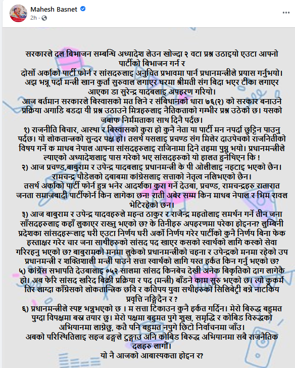 बस्नेतको भनाई जस्ताको त्यस्तै :