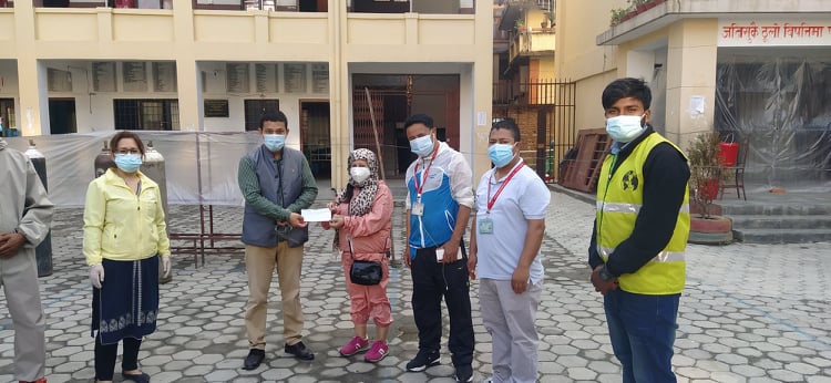 काठमाडौं, १५ जेठ । काठमाडौंको थापाथलीमा रहेको जनकल्याण परिवारले रत्नराज्य आइसोलेसनलाई ५० हजार आर्थिक सहयोग गरेको छ । बाग्मती प्रदेशसभा सदस्य दीपेन्द्र श्रेष्ठको पहलमा वडाध्यक्ष रामकुमार केसीको संयोजकत्वमा 100s ग्रुपले व्यवस्थापन गरेको काठमाडौ महानगर वडा नम्बर १० स्थित मध्यबानेश्वरको रत्नराज्य स्कुलमा सञ्चालित आइसोलेसन सेन्टरलाई थप व्यवस्थित र सुविधा सम्पन्न जनकल्याण परिवारले उक्त सहयोग उपलब्ध गराएका हो । पूर्व सिडिओ अम्बीका केसी अध्यक्ष रहेको जनकल्याण परिवारका महासचिव लक्ष्मण थापा र कोषाध्यक्ष पुष्प श्रेष्ठले सांसद श्रेष्ठलाई ५० हजारको चेक हस्तान्तरण गरेका हुन् ।