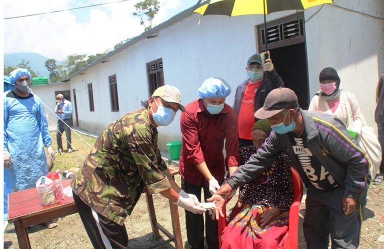 बेनी, १७ जेठः म्याग्दीको रघुगङ्गा गाउँपालिकाको कोभिड अस्पतालमा भर्ना भएर कोरोना जित्नु भएकी रघुगङ्गा गाउँपालिका–४ दग्नामकी ९७ वर्षीया इनरुपीदेवी पुन र उनका छोरा खिम पुन आइतबार अस्पतालमा उपचाररत बिरामी र कुरुवाको निःशुल्क भोजनका लागि सहयोगस्वरुप रु सात हजार प्रदान गर्दै ।