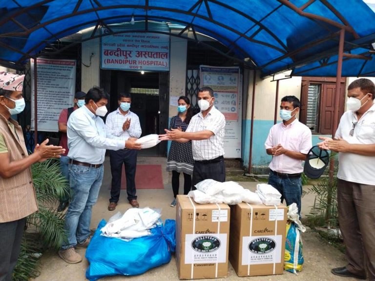 पौडेलले कोभिड नियन्त्रणका लागि तनहुँका ६ गाउँपालिका र ४ नगरपालिकामा १ लाख ३० हजार मास्क, पीपीई सेट (अस्थायी र स्थायी) २००० पिस, ५ हजार फेस शिल्ड, एन–९५ मास्क १५०० वटा, ग्लोब्स् र १० वटा अक्सिजन कन्सन्ट्रेसन वितरण गरेको बताए । उनले ५ गाउँपालिकाहरु म्याग्दे गाउँपालिका-१, ऋषिङ गाउँपालिका-१, देवघाट गाउँपालिका-१, आँबुखैरनी गाउँपालिका-१, घिरिङ गाउँपालिका-१, बन्दिपुर गाउँपालिका- २ वटा र ४ नगरपालिकाहरु भिमाद नगरपालिका-१, शुक्लागण्डकी नगरपालिका-१, भानु नगरपालिका-१ र ब्यास नगरपालिका नगरपालिकालाई-१ गरी १० वटा अक्सिजन कन्सन्ट्रेसन लगायत स्वास्थ्य सामाग्रीहरु वितरण गरेका हुन् । नेविसंघका नेता रोजन बानियाँको विशेष पहलमा बन्दिपुर अस्पताललाई गाउँपालिकाका अध्यक्ष पुर्ण सिं थापामार्फत २ वटा अक्सिजन कन्सन्ट्रेसनसहित स्वास्थ्य सामाग्री हस्तान्तरण गरिएको हो ।