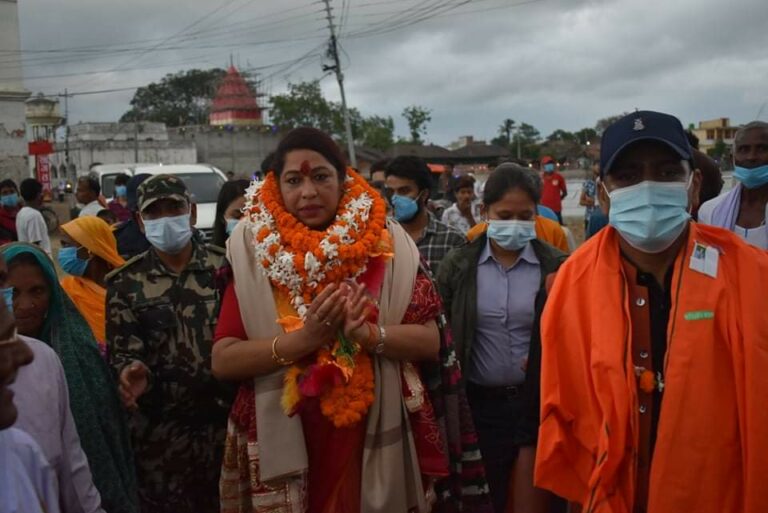 जनकपुर, ५ असार । नवनियुक्त महिला, बालबालिका तथा ज्येष्ठ नागरिकमन्त्री चन्दा चौधरीलाई जन्मस्थान महोत्तरीको मटिहानीमा जनताले भव्य स्वागत गरेका छन् । मन्त्री भएपछि पहिलोपटक उनी हिजो (शुक्रवार) जन्मस्थान महोत्तरीको मटिहानी आएकी हुन् । मन्त्री चौधरीलाई त्यहाँका स्थानीय जनताले भव्य स्वागत गरेको उनको सचिवालयले जनाएको छ ।