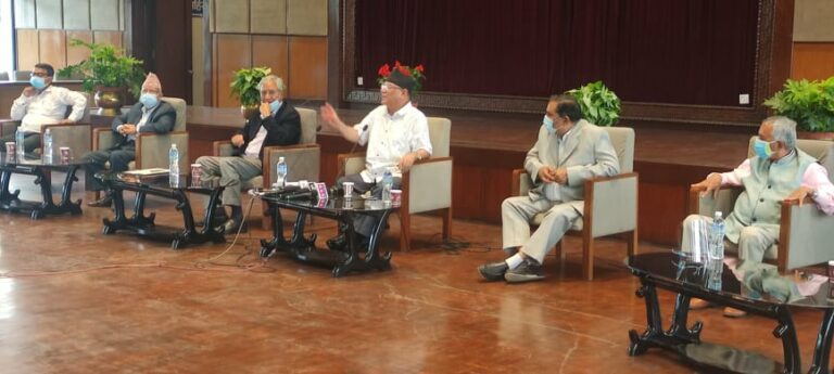 विपक्षी गठबन्धनमा आबद्ध शीर्ष नेताले बिहीबार संसद् भवन नयाँ बानेश्वरमा सम्पादकहरूसँगको अन्तत्र्रिmयामा प्रधानमन्त्री ओलीका निरंकुश कदमविरुद्ध र प्राप्त उपलब्धिको रक्षाका लागि दीर्घकालीन र सैद्धान्तिक आधारसहित गठबन्धन बनाइएको समेत बताए ।