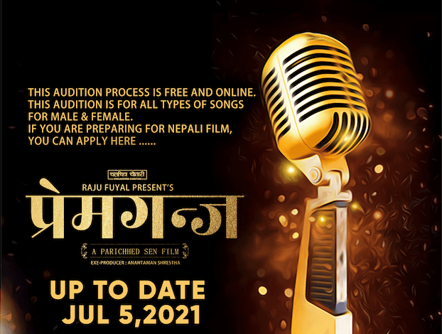काठमाडौं, ११ असार । चलचित्र चौतारीको ब्यानरमा निर्माणमा हुन लागेको नयाँ चलचित्र ‘प्रेमगञ्ज’ को लागि गायक र गायिकाको खोजी हुँदै छ । यसअघी चलचित्रको लागी नायक नायिकाका साथै अन्य कलाकारको लागी पनि यसरीनै खोजी र छनौट गरिएको थियो ।