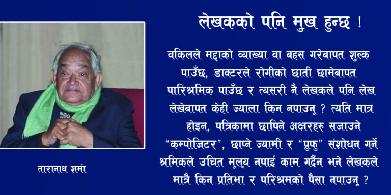 ‘नेपाली भाषा र साहित्यको सेवा गर्छु भन्ने तपाईंजस्ता प्रसिद्ध लेखकले पनि पैसाको आशा गर्न सुहाउँछ ?’ म उल्टो उत्तर पाउँछु ।