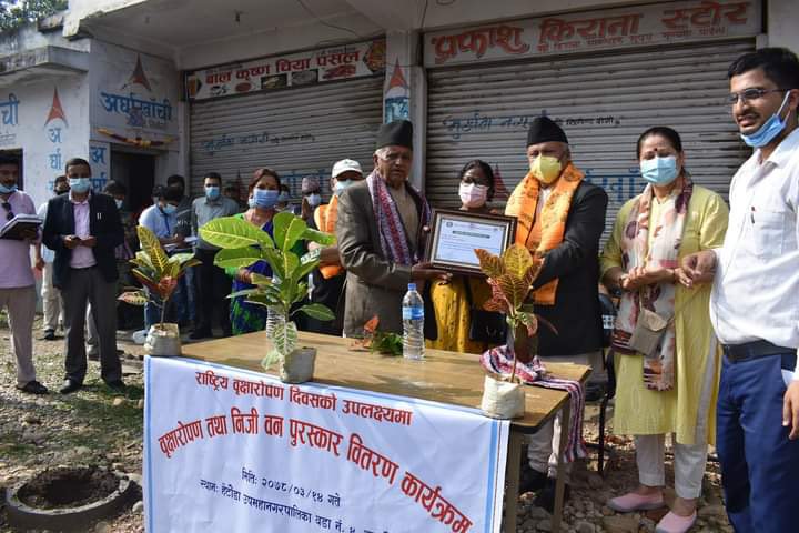 प्रदेशभरीमा उत्कृष्ट निजी वनमा धादिङका निजी वन धनी थल कुमारी सिंखडा र मकवानपुरगढी गाउँपालिका वडा नम्बर–३ का गोपाल प्रसाद सञ्जेललाई पुरस्कृत गरिएको छ । उनीहरुलाई जनहरी २५ हजार रुपैयाँका दरले पुरस्कृत गरिएको मन्त्रालयका अधिकृत सन्जिब सुवेदीले जानकारी दिए ।