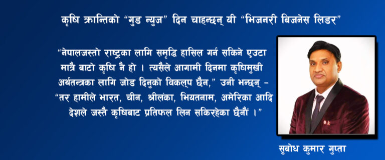 यस्ता विरोधाभासी तथ्यांकले बिथोलिरहन्छ, युवा उद्योगपति एवम् व्यवसायी सुबोध कुमार गुप्तालाई । गुप्तालाई यसकारण पनि बिथोल्छ कि उनी नेपाल चामल दाल तेल उद्योग संघका अध्यक्ष हुन् र निजी क्षेत्रको छाता संगठन नेपाल उद्योग वाणिज्य महासंघको केन्द्रीय कार्यकारिणी सदस्य पनि ।