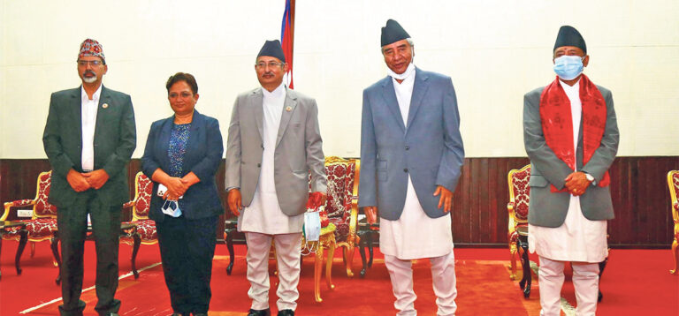 काठमाडौं, असार ३० । नवनियुक्त प्रधानमन्त्री शेरबहादुर देउवाले नेपाली कांग्रेस र माओवादीका दुईदुई नेतालाई सरकारमा सहभागी गराएका छन्। प्रधानमन्त्रीमा सपथग्रहणलगत्तै मन्त्रिपरिषद् गठन गर्दै देउवाले बालकृष्ण खाँण, ज्ञानेन्द्रबहादुर कार्की, जनार्दन शर्मा र पम्फा भुसाललाई सरकारमा सहभागी गराएका हुन्। देउवाले आफ्ना विश्वासपात्रद्वय खाँण र कार्कीलाई क्रमशः गृह र कानुन मन्त्रालयको जिम्मेवारी दिएका छन्। त्यस्तै माओवादी केन्द्रका नेता शर्मालाई अर्थ र भुसाललाई ऊर्जा मन्त्रालयको जिम्मेवारी दिइएको छ।