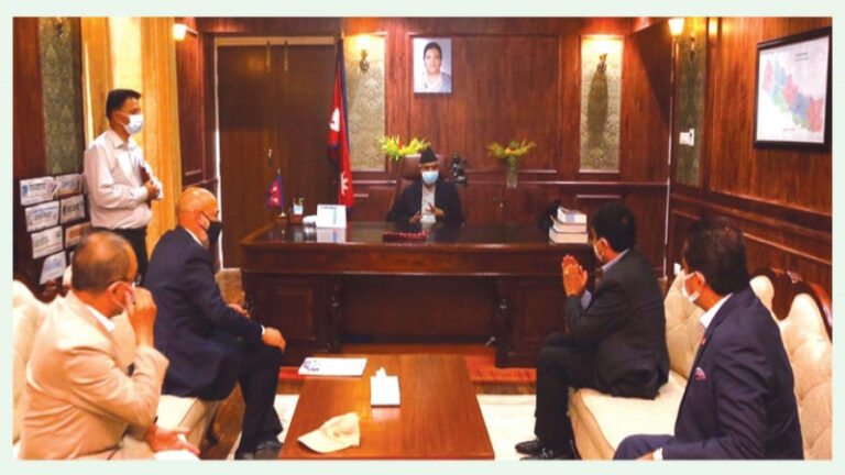 नेपाल उद्योग वाणिज्य महासंघको नेतृत्वमा प्रधानमन्त्री, अर्थमन्त्रीलाई शुभकामना तथा बधाई दिन गएका टोलीले कोभिड महामारीको समयमा खाद्यान्नलगायत अत्यावश्यकीय वस्तु आपूर्तिमा निजीक्षेत्रले महŒवपूर्ण भूमिका निर्वाह गरेको भन्दै कोभिडविरुद्धको खोपमा प्राथमिकतामा राख्न माग गरेका हुन् ।