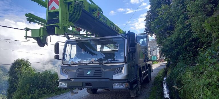 रसुवा, ९ साउन: नेपालको उत्तरी नाका रसुवागढीबाट आयात भएको जुम क्रेन । रसुवाको सबैभन्दा ठूलो २१६ मेगावाट क्षमताको अपर त्रिशूली वान जलविद्युत निर्माणका लागि यो क्रेन प्रयोग गरिने छ भने यसको मूल्य करीब ९० हजार यूएस डलर पर्छ ।