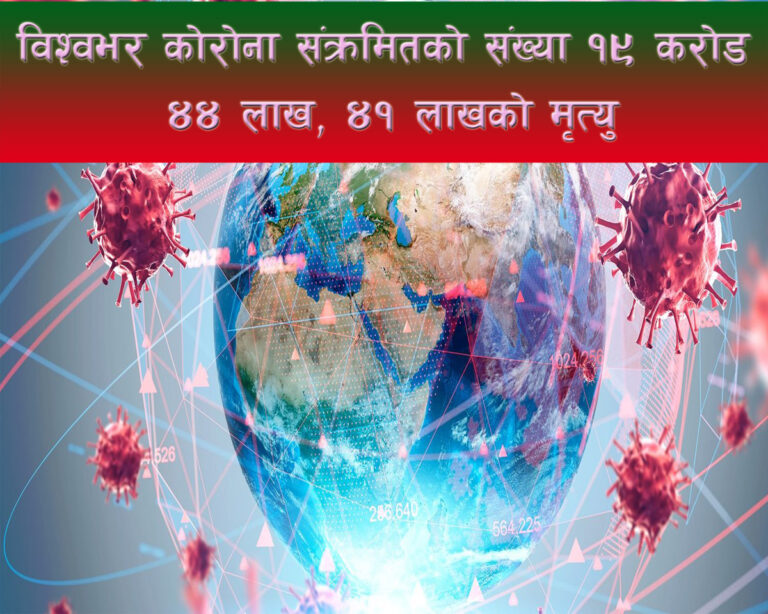 विश्वभर कोरोना संक्रमितको संख्या १९ करोड ४४ लाख, ४१ लाखको मृत्यु