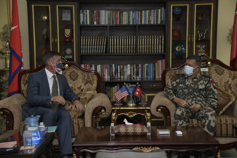 काठमाडौं, १९ साउन । नेपालका लागि अमेरिकी राजदूत र्याण्डी डब्लु. बेरी र प्रधानसेनापति पूर्णचन्द्र थापाबीच शिष्टाचार भेटवार्ता भएको छ । उनीहरुबीच आज जंग अड्डामा शिष्टाचार भेटवार्ता भएको हो ।