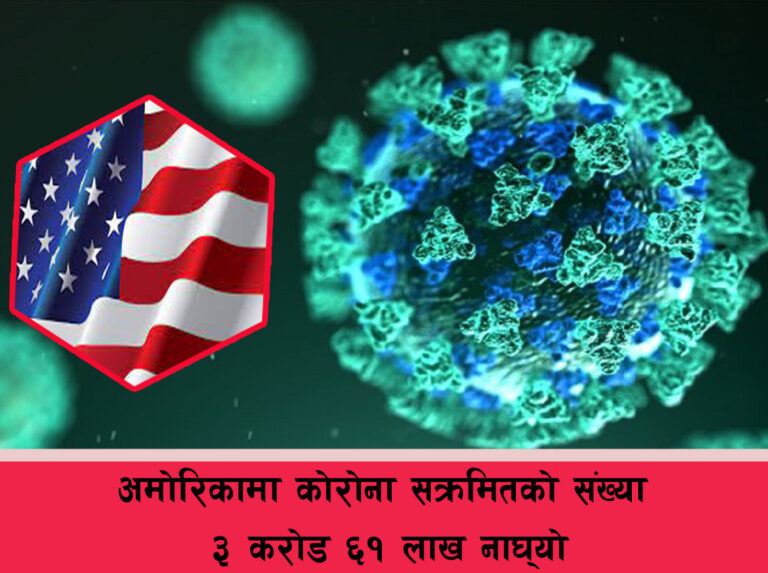 ३ करोड ६१ हजार ७६ हजार ४७१ जना हालसम्म अमेरिकामा कोरोना संक्रमित भएका छन् । यसैगरी, ५७ लाख ५७ हजार ८५६ संक्रिय संक्रमितको संख्या रहेको छ । १२ हजार ७०५ जनाको गम्भिर अवस्थामा उपचार भैरहेको जनाएको छ ।